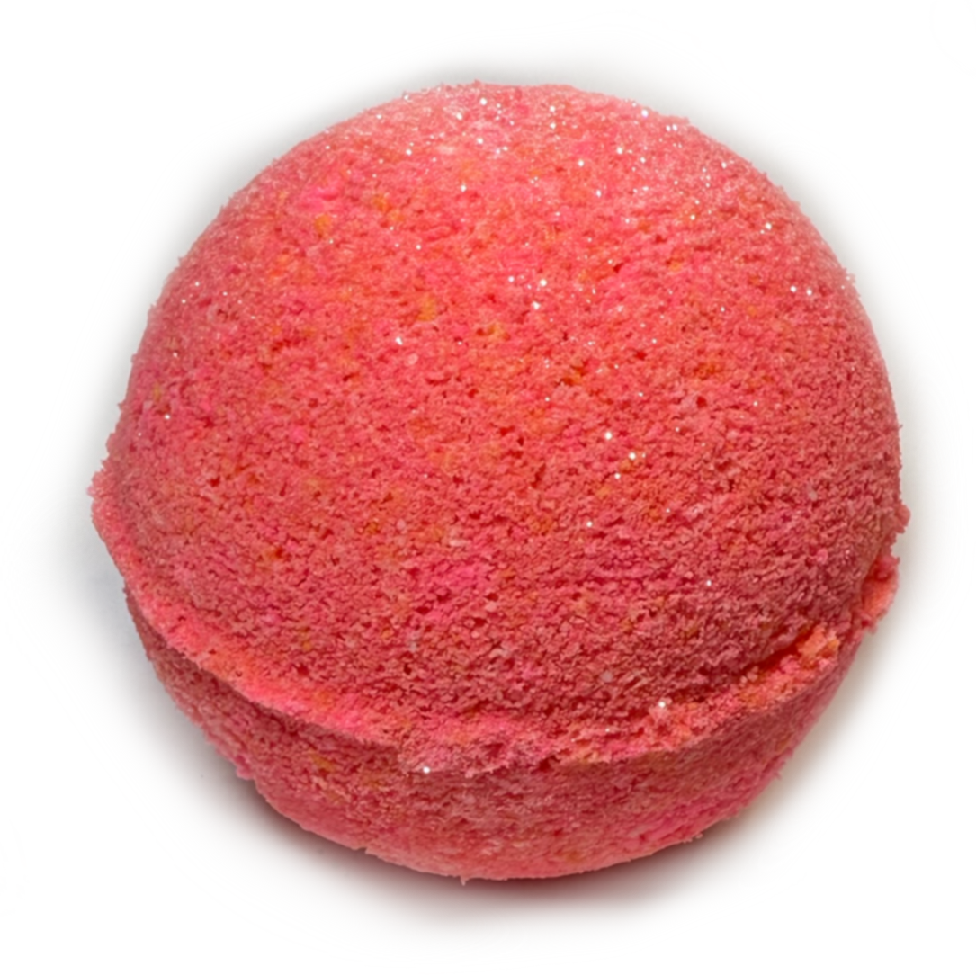 This Bath bomb is scented with hints of Strawberries, Raspberries, Mandarin Orange, Gardenia, Pink Jasmine, Honeysuckle and Vanilla Praline, Soft Woods and Amber. It smells similar to the famous fragrance Viva La Juicy.